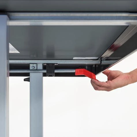 • Compensation for unevenness and different standing heights of up to 30 mm by means of height adjusters on the rear legs