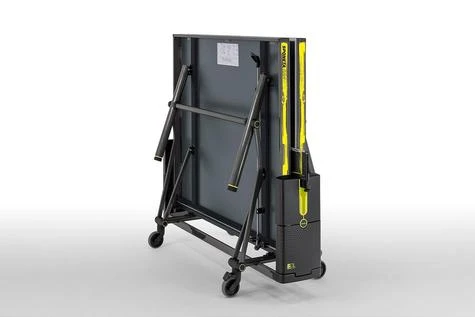 the table tennis table is nearly ready assembled (only the net set and plastic module at the side have to be assembled)