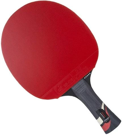 Made specifically for offensive players searching for a combination of power and feel, the Stiga 5 Star Focus is a professional table tennis bat with a 5-ply blade, a concave handle and S5 2.0mm rubber. Thanks to revolutionary ACS and Crystal technologies, the bat provides a high level of speed and excellent springiness, while WRB system delivers faster returns, explosive power and great touch. The bat has International Table Tennis Federation approval and the blade is made using NCT nano composite technology.